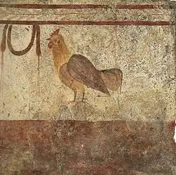 Das Grab des bunten Hahnes ist ein Männergrab aus der Mitte des 4. Jahrhunderts vor Christus, dessen Überreste in der Nekropole Vannullo bei Paestum gefunden und dort als Grab Nr. 4 bezeichnet wurden. Die Überreste befinden sich mittlerweile im Archäologischen Nationalmuseum in Paestum, wo sie die Inventarnummern 31734 bis 31737 erhalten haben.