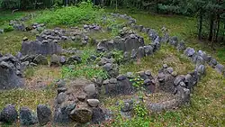 Der älteste Teil der Anlage wird durch einen annähernd polygonalen Steinkranz von etwa 24 m Durchmesser gebildet, in dem konzentrisch eine Steinpackung liegt. Unter dieser zentralen Steinlage lag die „Bestattung 1“, deren Gefüge nicht ermittelt werden konnte, da sie, vermutlich bereits während des 19. Jahrhunderts, vollständig zerstört worden ist.