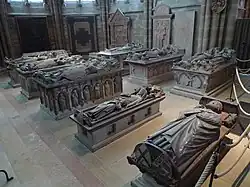 Der Landgrafenchor enthält Hochgräber (Kenotaphe) und Wandepitaphe. Die Gräber selbst befinden sich in den Fundamenten darunter. Alle hier beigesetzten Landgrafen waren direkte Nachkommen Elisabeths von Thüringen, die 1231 gestorben und bereits 1235 heiliggesprochen worden war.[1] Ihr Grabmal ist im Nordchor.