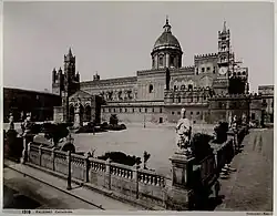 - ↑ Olaf B. Rader: Die Kraft des Porphyrs: Das Grabmal Kaiser Friedrichs II. in Palermo als Fokus europäischer Erinnerungen. In: Kristin Buchinger, Claire Gantet, Jakob Vogel (Hrsg.): Europäische Erinnerungsräume. Campus Verlag, Frankfurt am Main u. a. 2009, ISBN 978-3-593-38865-6, S. 33–46, hier S. 41 (eingeschränkte Vorschau in der Google-Buchsuche)
