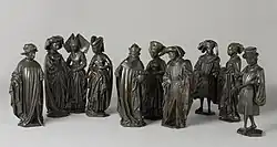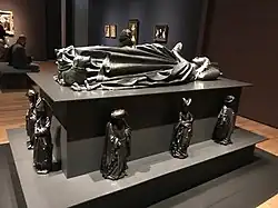 Der Sarkophag war vollständig von 24 Bronzestatuen (Pleurants/Trauernde) umgeben, die historische Persönlichkeiten darstellten und 55 cm hoch waren, darunter waren auch die Figuren des Kaisers Ludwig des Bayern (mit Kaiserkrone und Reichsapfel) und Albrecht des Bayern. 1681 wurden zehn der 24 fehlenden Bronzestatuen in Amsterdam entdeckt und 1887 an das Amsterdamer Rijksmuseum ausgeliehen. 1951 wurde ihre Herkunft durch die Untersuchungen von Jaap Leeuwenberg belegt.[4] Eine elfte Bronzestatue, die Katharina von Burgund darstellt, befindet sich im Warschauer Nationalmuseum.