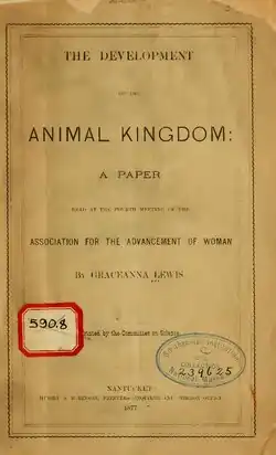 - The Development of the Animal Kingdom: A Paper Read at the Fourth Meeting of the Association for the Advancement of Woman. Nantucket, MA: Hussey & Robinson, 1877.