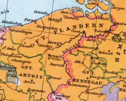 | Grafschaft Flandern um 1350, geteilt zwischen Frankreich und dem HRR. | |