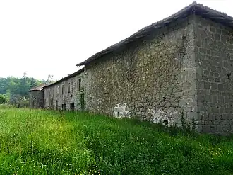 Das in einer halbrunden Apsiskalotte endende Kirchenschiff wurde in der zweiten Hälfte des 12. Jahrhunderts im romanischen Baustil errichtet. Es dient heute nur noch als Scheune. Auf der Südseite der Apsis sind noch eine Piscina mit Armarium zu erkennen.[1] In die Apsis sind drei große, für den Grammontenserorden charakteristische Rundbögenfenster eingelassen, die jetzt aber vermauert sind. Sie besitzen im Innern eine deutliche Leibung und sind nach außen als Doppelrundbogen mit sauber gearbeiteten Wölbesteinen gestaltet. Die Fenster sind überhöht und ragen in den Sims der Kalotte. Über den Fensterbögen läuft außen eine durchgehende Archivolte.
