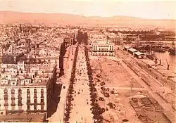 Der Initiator der Ausstellung, der Unternehmer Eugenio Serrano de Casanova, der 1885 von der Stadtverwaltung die Genehmigung dafür erhalten hatte, erwies sich als unfähig, dieses Großereignis zu bewältigen. Daher übernahm im April 1887 der damalige Bürgermeister von Barcelona, Francesc Rius i Taulet, mit einer Gruppe anderer Unternehmer die Leitung des Projektes. Die Zeit bis zur Eröffnung der Ausstellung war bereits knapp geworden. Die Pläne zur Gestaltung der Seefront wurden daher geändert und die vorgesehene Bebauung durch die Anlage einer neuen Straße, des Passeig de Colom (‚Kolumbus-Promenade‘) abgeschlossen. Diese erhielt ihren Namen nach der ebenfalls zur Weltausstellung errichteten Kolumbussäule.