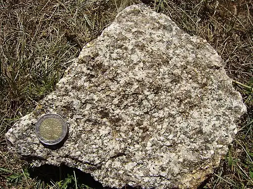 Granodiorit ist ein mit Granit eng verwandtes magmatisches Gestein, das mit einem Anteil von 34 % an den Plutoniten der Erdkruste weltweit verbreitet ist.[1] Das Gestein kommt auf allen Kontinenten vor.