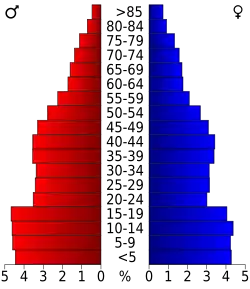 Auf das gesamte County bezogen setzte sich die Bevölkerung zusammen aus 32,00 % Einwohnern unter 18 Jahren, 9,80 % zwischen 18 und 24 Jahren, 27,00 % zwischen 25 und 44 Jahren, 19,70 % zwischen 45 und 64 Jahren und 11,50 % waren 65 Jahre alt oder darüber. Das Durchschnittsalter betrug 31 Jahre. Auf 100 weibliche Personen kamen 104,50 männliche Personen, auf 100 Frauen im Alter ab 18 Jahren kamen statistisch 103,40 Männer.