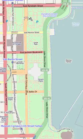 Der Grant Park ist ein großer städtischer Park im Bereich des Chicago Loop und wird im Norden von der Randolph Street, im Süden durch die Roosevelt Road und den McFetridge Drive, im Westen durch die Michigan Avenue und im Osten durch den Lake Michigan begrenzt. Der Park, der inmitten von Chicagos Geschäftszentrum liegt, beherbergt Attraktionen wie den Millennium Park, den Buckingham-Brunnen und das Art Institute of Chicago. Der Park, der ursprünglich Lake Park hieß, wurde im Jahr 1901 zu Ehren von Ulysses S. Grant, dem Oberbefehlshaber des US-Heeres im Sezessionskrieg und von 1869 bis 1877 der 18. Präsident der Vereinigten Staaten von Amerika, umbenannt. Der Park, der auch Chicagos Vorgarten genannt wird, wird durch den Chicago Park District unterhalten.