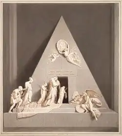 1798 starb Erzherzogin Marie Christine in Wien. Albert erteilte Antonio Canova, dem berühmtesten Bildhauer seiner Zeit, den Auftrag, ein imposantes Grabmonument zu entwerfen. Canova gestaltete einen pyramidenförmigen Kenotaph, der neben dem Palais des Herzogs in der Augustinerkirche aufgestellt wurde – das erste öffentliche Grabdenkmal für eine Frau in Wien.[3]