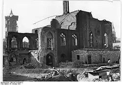 Die Gebäude des ehemaligen Klosters und die Klosterkirche nahmen im Zweiten Weltkrieg schweren Schaden. Die notdürftig gesicherten Ruinen der Kirche, des Refektoriums und des Kapitelsaals erlitten 1951 erneut massive Beschädigungen beim Bau eines U-Bahn-Betriebstunnels, der aufgrund der Spaltung der BVG erforderlich geworden war. Die Reste der anderen Gebäudeteile des Klosters wurden zwischen 1959 und 1961 abgeräumt, während Refektorium und Kapitelsaal als Weinrestaurant wiederaufgebaut werden sollten. Im Juni 1968 kam es infolge der Verbreiterung der Grunerstraße jedoch zum oberirdischen Abriss.[14] Seit 1968 ist daher nur noch die Ruine der Klosterkirche zu sehen; das Gymnasium befindet sich seit 1963 im Ortsteil Schmargendorf.[3]
