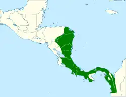 Der Vogel kommt in Zentralamerika von Honduras bis Kolumbien vor.