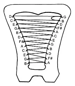 - Rechts: G2, B2, D3, F#3, A3, C4, E4, G4, B4, D5, F#5, A5