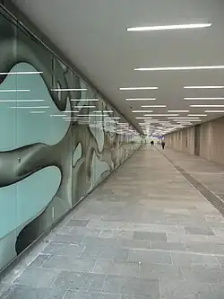 Hier ist ein neuer Ein- und Ausgang entstanden, der den Hauptbahnhof mit dem Grazer Westen verbinden soll.[8] Eine Seite der Wand ist ähnlich der Haupthalle von Peter Kogler künstlerisch gestaltet. Der Tunnel wurde am 10. April 2013 eröffnet.[9]