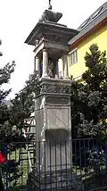 Bildstock I bei Zeillergasse 25 Vom Originalstandort wegen der Verkehrslage um zirka einen Meter versetzt. Bildtafel mit Darstellung der Beschneidung Christi aus dem späten 18. oder frühen 19. Jahrhundert wurde 1997 durch eine Darstellung Adolf Osteriders ersetzt.[48]