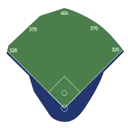 | Spielfläche | Left Field – 328 ft (100 m) Left-Center – 379 ft (116 m) Center Field – 404 ft (123 m) Right-Center – 370 ft (113 m) Right Field – 325 ft (99 m) Backstop – 55 ft (17 m)