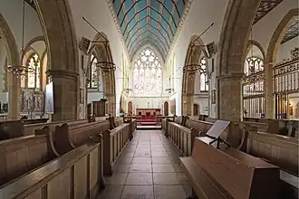 Der Grundriss der mit einem Querhaus versehenen Kirche entspricht dem eines lateinischen Kreuzes. Die Einteilung durch Spitzbogenarkaden in mehrere Schiffe und deren hölzerne Decken sind typisch für gotische englische Hallenkirchen und für gotische englische Pfarrkirchen überhaupt. Die drei Schiffe des Langhauses haben die für englische Hallenkirchen typischen Paralleldächer. Außergewöhnlich ist die Verbindung breiterer Seitenschiffe mit einem schmaleren Mittelschiff, die Breite von Mittelschiff und Querhaus war seit der Anfangszeit dieses Bauwerks durch den Vierungsturm vorgegeben. Alle drei Schiffe sind mit kassettierte und polygonalen hölzernen Tonnengewölben gedeckt, die auch als ceiled wagon roof bezeichnet werden, im Unterschied zum echten wagon roof („Planwagendach“),[2] bei dem nan durch den Dachstuhl bis an die Dachschrägen sehen kann. Im Chorbereich hat nur das Mittelschiff, der eigentliche Chor einen solchen ceiled wagon foof,[3] die im fünfschiffigen Teil des Chors auch als Kapellen bezeichneten Seitenschiffe haben flache Decken, die etwa in Basishöhe der Basis der Mittelschiffstonne liegen, so dass dieser Teil der Kirche sowohl als Hallenkirche als auch als Pseudobasilika bezeichnet werden kann.
