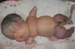 - bereits während der Schwangerschaft: Hydramnion, Hydrops fetalis, Phokomelie