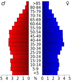 22,2 Prozent der Bevölkerung waren unter 18 Jahre alt, 8,1 Prozent zwischen 18 und 24, 28,7 Prozent zwischen 25 und 44, 26,1 Prozent zwischen 45 und 64 und 14,8 Prozent waren älter als 65. Das Durchschnittsalter betrug 39 Jahre. Auf 100 weibliche Personen kamen statistisch 95,1 männliche Personen und auf 100 Frauen im Alter von 18 Jahren und darüber kamen 91,4 Männer.