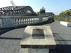 Am ersten Jahrestag des Mauerfalls wurde östlich der Brücke auf dem Gelände der ehemaligen Grenzübergangsstelle ein Gedenkstein errichtet. Dieser ist aus einem Mauersegment gefertigt. Seine Inschrift lautet: