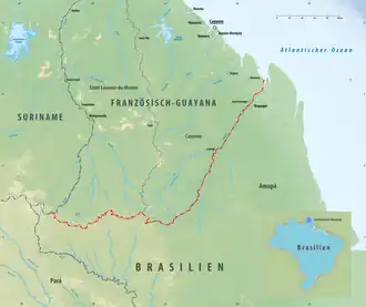 Die Grenze zwischen Brasilien und Frankreich hat eine Länge von 649 Kilometern.[1] Die Brücke über den Oyapock stellt den einzigen offiziellen Grenzübergang auf dem Landweg zwischen den beiden Staaten dar.