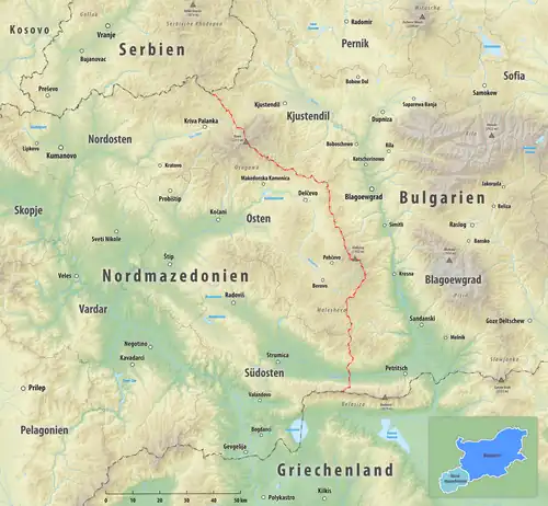 Die Grenze zwischen Bulgarien und Nordmazedonien trennt diese beiden Staaten. Sie ist seit dem Beitritt Bulgariens zur Europäischen Union zugleich EU-Außengrenze.