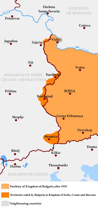 Der Verlauf der Grenze geht ursprünglich auf den Berliner Kongress 1878 zurück. Eine Grenzkorrektur zugunsten Serbiens erfolgte durch den Vertrag von Neuilly-sur-Seine nach Beendigung des Ersten Weltkriegs. Dadurch kamen u. a. Dimitrovgrad (damals noch Caribrod) und Bosilegrad an Serbien. Von 1941 bis 1945 standen diese Gebiete vorübergehend wieder unter bulgarischer Verwaltung (vgl. Pariser Friedenskonferenz 1946).