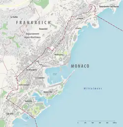 Die Grenze zwischen Frankreich und Monaco hat eine Länge von 5469 Metern.[1] Das Fürstentum Monaco weist einzig die Grenze zur Französischen Republik auf.