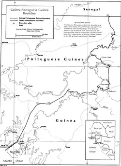Frankreich und Portugal unterzeichneten am 12. Mai 1886 ein Grenzabkommen, das die heutigen Grenzen von Guinea-Bissau mit dem Senegal und Guinea umfasste. Eine gemeinsame Grenzkommission besorgte von 1900 bis 1905 die Vermarkung im Gelände mit 184 Grenzsteinen, davon die Steine 1 bis 58 an der Grenze zu Französisch-Guinea. Der Grenzverlauf wurde durch einen Notenwechsel in den Jahren 1905/1906 bestätigt.[4]