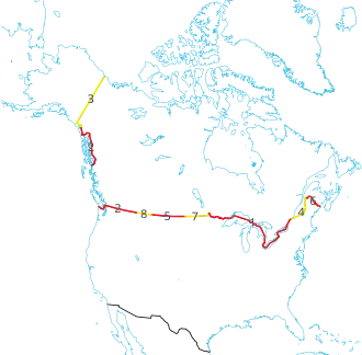 | 7 | Washington | 687 km (427 mi) | 7 | Manitoba | 497 km (309 mi) | |