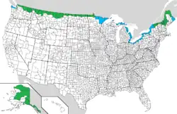 | 3 | Maine | 983 km (611 mi) | 3 | Yukon | 1244 km (786 mi) | |