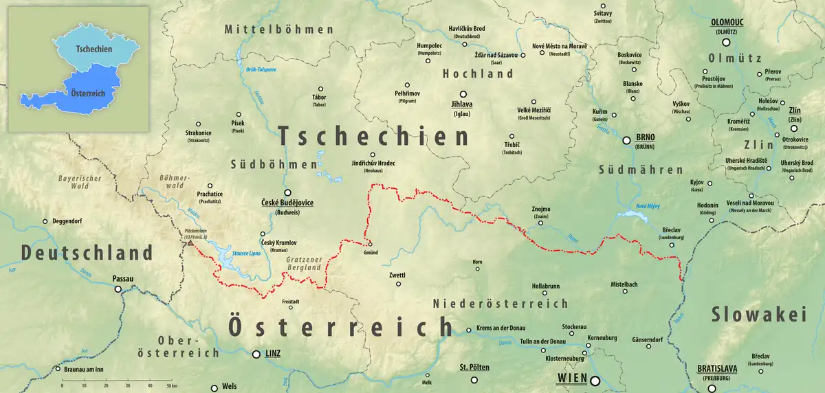 Die Grenze zwischen Österreich und Tschechien hat eine Länge von 466,1 Kilometern.[1]