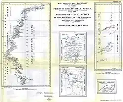 Die Grenzziehung geht auf den Wettlauf um Afrika in den 1880er Jahren zurück. Auf der Berliner Kongokonferenz im Jahr 1884 wurden die territorialen Ansprüche der europäischen Mächte in Afrika abgestimmt. Frankreich drang daraufhin weiter in das Innere Afrikas vor und besetzte Französisch-Westafrika und Französisch-Äquatorialafrika. In den 1890er Jahren eroberte das Vereinigte Königreich den Sudan und unterstellte ihn als Anglo-Ägyptischer Sudan der gemeinsamen Verwaltung mit dem Khedivat Ägypten, das 1914 formell britisches Protektorat wurde.[1] 1898/99 kam es zu einer britisch-französischen Vereinbarung über die wechselseitigen Einflusssphären im nördlichen Afrika. Dabei erfolgte auch die Festlegung des geradlinigen Verlaufs bis zur Nordgrenze des Sultanats Darfur, das ab 1916 vollständig von britischen Truppen unterworfen und dem Sudan eingegliedert wurde. Die Grenze von Darfur gegen das Reich Wadai bildet die Grundlage für die sudanesisch-tschadische Grenze. In der britisch-französischen Vereinbarung vom 8. September 1919 wurde das Dreiländereck Libyen-Sudan-Tschad genau festgelegt, die Ratifizierung des Grenzverlaufs erfolgte am 21. Januar 1924.[2] Eine 1935 vereinbarte Überlassung des Aouzou-Streifens an Italien, die das Dreiländereck nach Süden verlagert hätte, kam nicht zustande. 1956 wurde der Sudan unabhängig, der Tschad 1960. Damit wurde die Grenze zur internationalen Grenze zwischen den nunmehr unabhängigen Staaten. Infolge der Unruhen im Tschad (Bürgerkrieg im Tschad 2005–2010) und im Darfur (Darfur-Konflikt) ist das Grenzgebiet in der Folge nicht zur Ruhe gekommen. 2010 kam es schließlich zu Friedensgesprächen.[3]