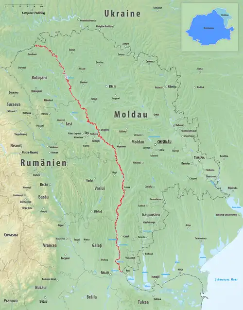 Von dem insgesamt 3069 Kilometer langen Grenzverlauf Rumäniens entfallen 683 Kilometer[1] auf die Grenze zur Republik Moldau. Mit Ausnahme eines 570 m langen Abschnitts in der Donau verläuft die Grenze vollständig im Grenzfluss Pruth.