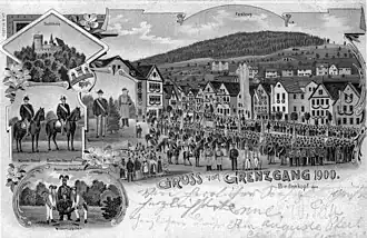 Nach der Rast setzt sich der Zug der Grenzgänger erneut in Bewegung, um den restlichen Grenzabschnitt zu begehen. Der Zug endet zum frühen Nachmittag am Ausgangspunkt der Grenzbegehung, der Stadtmitte. Am späteren Nachmittag findet erneut eine Aufstellung am Marktplatz statt. Daraufhin findet ein Festumzug zum Festplatz statt; im Festzelt klingt der Tag aus.[3]