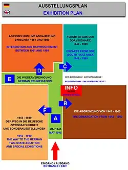 Das Museum thematisiert die deutsche Teilung von 1945 bis 1990 im Rahmen einer Dauerausstellung und durch wechselnde Sonderausstellungen. Die Dauerausstellung ist in fünf Abteilungen gegliedert, in denen die geschichtlichen Ereignisse nach Zeitabschnitten und mit der Fokussierung auf die Region des Südharz behandelt werden.