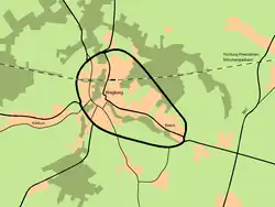 Im Jahr 1939 wurde der Bau der Ringstraße als „strategisch wichtige Aufmarschstraße für den Westfeldzug“ begonnen. Mit einem Kostenaufwand von etwa 3,3 Millionen Reichsmark war die Ortsumgehung von Wegberg und Beeck in Nähe der Grenze zu den Niederlanden erst während des Krieges fertiggestellt worden. Die durch Wegberg verlaufende Eisenbahnstrecke „Eiserner Rhein“ wurde dabei von zwei Brücken über- beziehungsweise unterquert. Die Straße wurde zunächst im Rahmen der Flurbereinigung in eim Umlegungsverfahren als zweiteilige Straße geplant. Erst durch die Reichsstraßenverwaltung wurde eine Ringform vorgeschlagen. Die Straße wurde erst während des Krieges fertiggestellt. Aufgrund nicht bedeutsamer Nutzung im Zweiten Weltkrieg geriet sie bald danach jedoch in Vergessenheit.