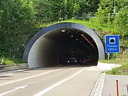- ↑ Kurosch Thuro, Gerhard Brugger, Friedrich Winkler: Ungewöhnliche geologische Verhältnisse und deren Bewältigung im Vortrieb des Grenztunnels Füssen. In: Felsbau 15 (1997), Nr. 6, S. 507–513 (PDF; 605 kB ( vom 15. Februar 2010 im Internet Archive))
