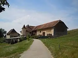 ![]() Bürgermeisteramt (Mairie) und Dorfkirche von Gresin | ||