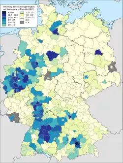 - ↑ Ausländische Bevölkerung - Fachserie 1 Reihe 2 - 2019. Deutsches Statistisches Bundesamt, 15. April 2020, abgerufen am 11. Januar 2021.