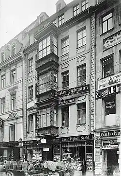 - ↑ Ernst Müller: Die Häusernamen von Alt-Leipzig. Vom 15.–20. Jahrhundert mit Quellenbelegen und geschichtlichen Erläuterungen (= Schriften des Vereins für die Geschichte Leipzigs. Bd. 15). Leipzig 1931, DNB 365001511 (Reprint bei Hirt, Leipzig 1990: ISBN 978-3-7470-0001-4), S. 34.