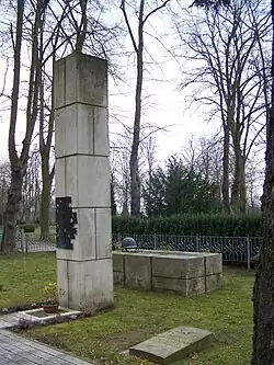 Am Rande der Karlstraße befand sich in der Zeit von 1843 bis zur Zeit des Nationalsozialismus (1933–1945) ein kleiner jüdischer Friedhof, auf dem noch 1938 15 bis 20 Gräber mit Grabsteinen vorhanden waren. 1922 fand dort die letzte Bestattung statt. 1940 ließen die Nazis die Grabsteine abnehmen und verpachteten das Land als Gartenland für Beamte. 1972 wurde die Hälfte des Geländes planiert und bebaut. Im Jahre 2009 setzte man einen Gedenkstein auf die verbliebene, mit Tannen bestandene Fläche. Der Stadtrat lehnte die Verlegung von Stolpersteinen zum Gedenken an die ermordeten Juden 2018 mit den Stimmen der CDU und SPD ab.[6]