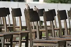 Nach mehrheitlichem Beschluss des Leipziger Stadtrates im Oktober 2000 konnte das Grundstück zu einem großflächigen Mahnmal umgestaltet werden. Das am 24. Juni 2001 eingeweihte Mal zeichnet auf einer Fläche von 12 × 12 Metern den Grundriss des zerstörten Gebäudes nach. Das Innere bildet ein Feld aus 140 leeren Bronzestühlen, die den Verlust der architektonischen Hülle erfahrbar machen sollen. Die westliche Grundstücksgrenze bildet eine Wand aus Sichtbeton mit Texten in englischer, deutscher und hebräischer Sprache auf jeweils drei Bronzetafeln.