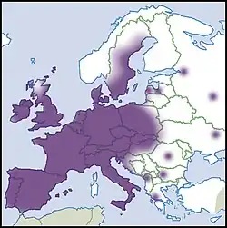 Die Art war ursprünglich nur in West- und Südwesteuropa bis nach Südwestdeutschland heimisch. Sie ist aber mittlerweile in ganz Mitteleuropa verschleppt. In Skandinavien ist sie nur in Gärten und Gewächshäusern nachgewiesen. Durch anthropogene Verschleppung kommt sie auch in anderen gemäßigten Regionen der Erde vor. In der Schweiz wurde sie schon auf 2.000 m über Meereshöhe gefunden, allerdings ist sie über 1.000 m schon sehr selten.