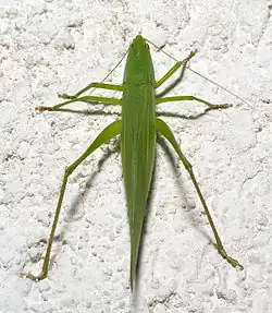 Die Große Schiefkopfschrecke (Ruspolia nitidula) ist eine Art aus der Unterfamilie der Schwertschrecken (Conocephalinae).