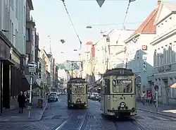 Zu Beginn des 20. Jahrhunderts wurde die Flensburger Straßenbahn eingerichtet, die bis Anfang der 1970er Jahre auch entlang der Großen Straße fuhr. Anfang der 1970er Jahre wurde die Große Straße, wie auch der Holm, zur Fußgängerzone umgestaltet.[20] In den Jahren 2007/2008 wurden die beiden Straßen Holm und Große Straße umfassend saniert und neu gestaltet. Beide Straßen erhielten eine neue Bepflasterung aus wetterbeständigen chinesischen Granit aus der Provinz Shandong.[21][22] Des Weiteren wurden zeitgleich die Bänke und Lampen der beiden Straßen ersetzt. Ein Brunnen aus runden Betonwannen, der sich zuvor im Fußgängerzonenbereich der Großen Straße befand, wurde offenbar ebenfalls in dieser Zeit entfernt.[23]