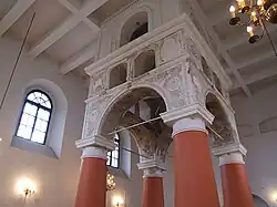 Die Bima in der Mitte der Halle stand zwischen vier massiven Säulen, die nach oben in ein baldachinähnliches Dach übergingen, und stützte die Decke ab. Dieser Typ verbreitete sich ab der zweiten Hälfte des 16. Jahrhunderts in Polen und ist als Stützbima bekannt.