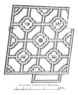 Des Weiteren hatte sich bis zur Kriegszerstörung nur noch wenig innere Originalausstattung erhalten, die höchstwahrscheinlich aus Kostengründen nicht in die Rekonstruktion mit einbezogen wurde. Dazu gehörte eine Stuckdecke in der großen Vorderstube des zweiten Obergeschosses (s. Bilder), welche in ihren Motiven von geometrischen Ornamenten eingerahmte Engelsköpfchen zeigte. Auch noch dem frühen 16. Jahrhundert entstammend war eine im spätgotischen Stil gehaltene Tür im Dachgeschoss, die nicht bildlich dokumentiert ist.
