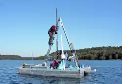 Bohrplattform zur Seesedimentgewinnung auf dem Großen Fürstenseer See