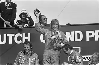 In der 44. Runde eroberte Lauda nach einem spannenden Duell den zweiten Platz von Jarier. Dieser drehte sich eine Runde später aufgrund eines Reifendefektes und schied aus. Währenddessen verkürzte Lauda den Vorsprung des Führenden Hunt.