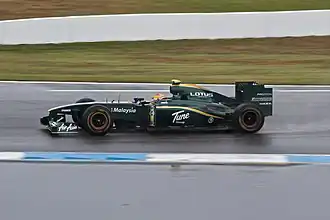 - ↑ a b Fauzy fuhr den Lotus mit der Nummer 19 im ersten freien Training. Kovalainen übernahm das Fahrzeug anschließend für das restliche Rennwochenende.